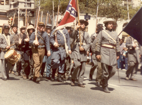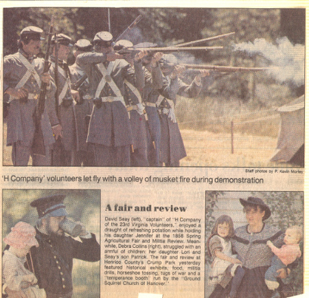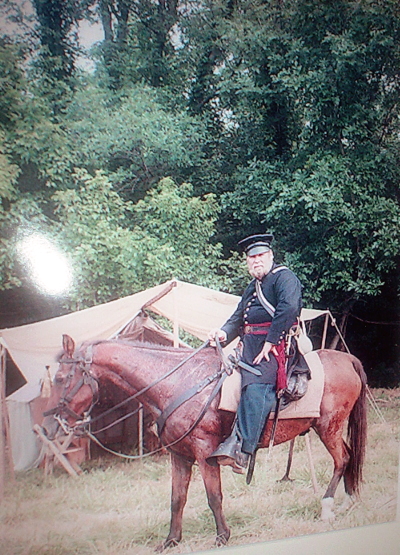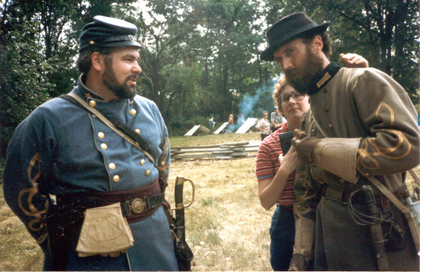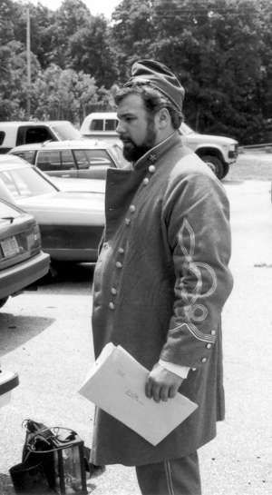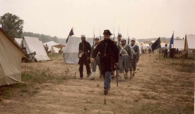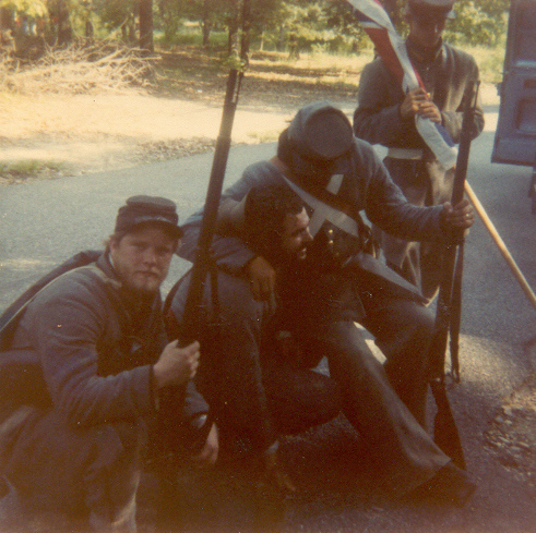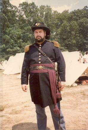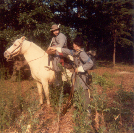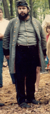 I returned home from Craig's shop that evening and immediately called Dave. He was glad I called, had a kind manner about him, and was blunt. I would have to bring my things over to see what would be acceptable in his unit and what would need to be replaced. Later that week, I assembled my things and went to the apartment of Dave and his wife and baby daughter in the east end of Richmond. Although more than 30 years ago, I remember it well. Dave answered the door. He was heavy set with full black hair and Elvis sideburns. His complexion was swarthy. He was what I, from my private high school perspective, considered a redneck. Dave organized his reenacting group a couple years before we met. It was the 23rd Virginia and it boasted about 7 members. The name didn't mean much to me then, although it certainly would later. I have always thought that Dave picked the 23rd Virginia because of a book. It was called Uniforms of the Civil War, from a Macmillan Color Series published in 1975. Like motels advertised air conditioning, this book emphasized its color drawings. It was unique in that the uniforms it illustrated were derived from originals. And plate 51 featured a soldier of Co. E., Brooklyn (Halifax County) Grays, 23rd Virginia Volunteers. So with a documented Confederate uniform of a fighting unit that fought with Jackson, and with a company from the city of Richmond, the designation of the 23rd made sense. Although Dave would designate our unit as Co. H, Richmond Sharpshooters, we would fashion our uniform from that drawing of a Co. E soldier; a light gray frock coat with a standing collar having a yellow strip and collar button. There was only one source for that coat, and that was Dave's grease-stained fingers. I laid out my collection of clothing and equipment on Dave's red shag carpet. The assemblage wasn't too bad, considering it was 1977 and few people made the right stuff. My clothing came largely from my father and sisters' closets; 1950's natural and coarse fibers, plastic buttons replaced with wood from the local Sew-Frow store. The jacket was a sack coat pattern, purchased in a souvenir shop, poly-wool blend with a proper shape but nothing like the correct pattern. It would go. My canteen was Spanish-American War vintage, called by the hobby "Span-Am" and unappreciated, because it was no more a relic than a Civil War relic was at the time of the Spanish-American War. It too would go. Craig had sold me my Kepi so it was acceptable, but it was too nice, not befitting a dirty Authentic, and it would soon be replaced by a slouch hat. My shoes were Thom-McCann desert boots with rubber soles. They laced more or less properly, looked something like brogans in tall grass, were the only option to all soldiers at the time, and would do. My weapon was a two-band Zuave, for some reason the most prevalent rifle in the hobby at the time, but rare in the real war. I suppose an Italian entrepreneur grabbed the first musket he could find (a Victorian European favorite) and reproduced it to feed the strange American past time. Dave offered to trade it and $75.00 for a slightly used 1861 Springfield repro (reproduction). I had no idea what my Zuave with sword bayonet was worth compared to that Springfield, but accepted the trade in faith. I now know the trade was favorable to me. I carried that musket for 23 years until the stock cracked. Although no less than the late author and reenactor Brian Pohanka accepted it at a Bentonville safety inspection, I retired it to my den wall. It is not an artifact of the Civil War but a connection to Dave. I bought a new Springfield. Dave told me my other bayonet with a strange inscription was Egyptian. I never really understood that but took him at his word. I soon purchased a new one. My hat remained a problem. I didn't like my "look" in that acceptable kepi. Dave suggested I go down on Broad Street in Richmond to an "ethnic" clothing store and see what I could find. I did. I could tell it was a good hat when I first saw it on its styrofoam head display. With the feathers and hat band removed, it was "correct". That night, Dave boasted that he only had an 8th grade education, but knew more than all those other folks (a paraphrase). I soon learned that he was right. He was the most intelligent, modestly educated man I have ever known. Three months later I matriculated as a Rat at Virginia Military Institute. The newest and youngest member of the 23rd, I was a nobody. Dave sent me a couple letters of encouragement. Over the 31 years I have known Dave and shared this common passion, there have been created a number of memories that I cherish. I won't attempt to recount them all now, but will tempt you with a few. Dave was certainly somewhat overweight. But his handsome features cut a fine figure in an officer's uniform, particularly when he was mounted. I remember once he rode to the front of the battalion on a gray mare. Some soldier from back in the ranks with a deep, loud voice yelled, "Hey look, a horse with two assholes!" Had we not known that the offending private loved Dave just as we did, there might have been repercussions. The boys had a hearty laugh. Dave smiled. Dave liked to use big words. But he didn't use them particularly well. For instance, soldiers advanced to the front were "scrimmagers" (skirmishers), simulated artillery shell explosions were "paratactics" (pyrotechnics), Spaghetti was "psghetti", we were ordered to "stagnate" (stagger) our fire, a term with no historical basis. Dave even referred to himself in the third person, usually recounting a scolding from his wife, as "Davitt". I guess it was an east end accent. We called it "Dave Speak", and changed our vocabulary accordingly. Dave always commanded, and he once led a wing of the Confederate force in the always intense Saylor's Creek Reenactment. Our battalion advanced through the woods to the edge of a field. The left flank of the Federal army lay there, exposed in that field, up 