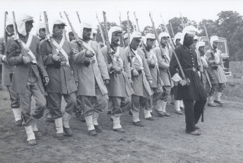 We expect our new members to assemble their primary uniform and equipment within the first year of membership as individual finances will allow. We recommend a general mid to late-war impression be developed first. Then, with a few modest additions to the wardrobe, the late-war impression and the early war impression can be perfected. All members are encouraged to purchase our pre-war militia/early war regimental impression which most members possess and which are quite unique. The photographs below provide a general view of how our impressions change according to the period we portray.