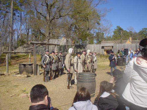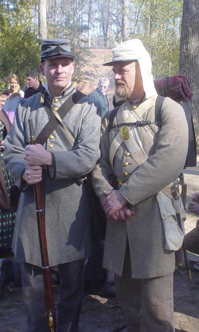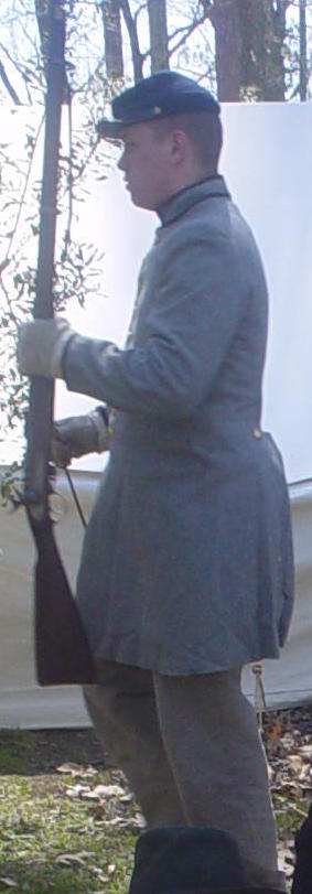 In February, members of the 23rd Virginia attended our annual Camp of Instruction (COI) with our sister units of the Independent Volunteer Rifles (IVR), a campaigner battalion comprised of the 15th and 23rd Virginia Infantry Regiments, The Petersburg City Guard, The Doggery Boys Mess, and The Princess Anne Greys (Lee's Sharpshooters). COI gives our IVR units the opportunity to practice drill and maneuver at the battalion level with a large number of troops, in preparation of our upcoming IVR events. The weekend includes instruction of officers and NCO's in company and regimental level movements. New recruits and forgetful veterans are given the opportunity to develop their drilling skills at the school of the soldier. COI also gives the boys of the IVR the opportunity to build camaraderie. Our special thanks to Pamplin Historical Park and Museum of the Civil War Soldier in Dinwiddie County for allowing the IVR to use their winter quarters facility. This outstanding facility includes several winter huts for enlisted, NCO, and officer personnel which will be used for the Park's Civil War Adventure Camp for kids. This park is truly the finest experience of Civil War life in the nation. |